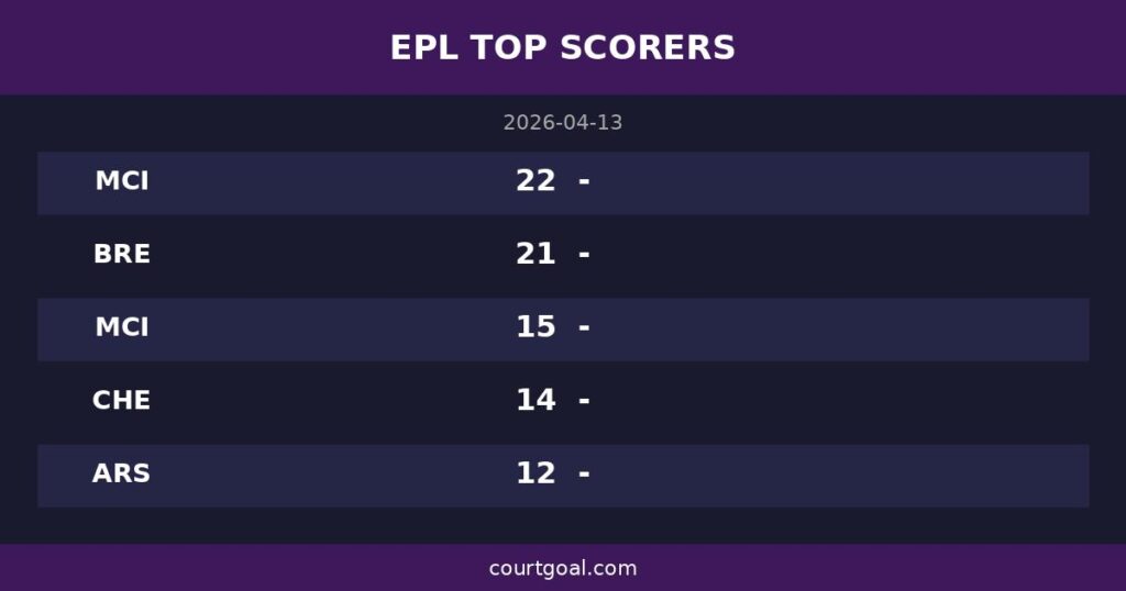 EPL 득점 순위 TOP 10 2026년 4월 13일 기준, 프리미어리그 득점왕 경쟁이 마지막 스퍼트에 돌입했습니다. 맨체스터 시티의 할란드와 브렌트포드의 티아고 […]